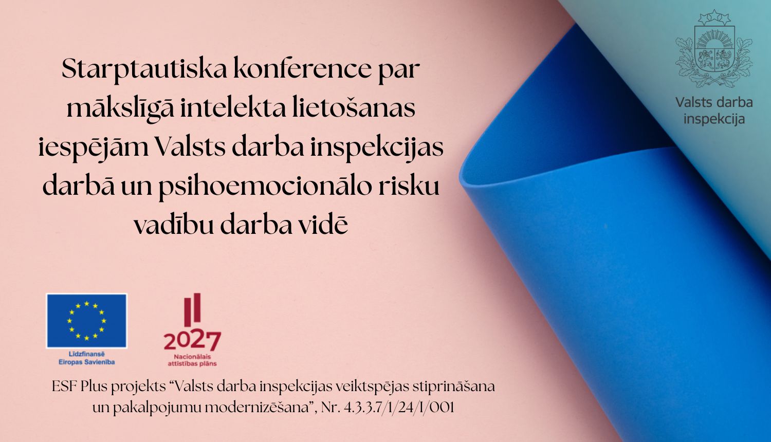 2026. gada 25. un 26. februārī Valsts darba inspekcija organizē starptautisku konferenci par mākslīgā intelekta lietošanas iespējām Valsts darba inspekcijas darbā un psihoemocionālo risku vadību darba vidē.